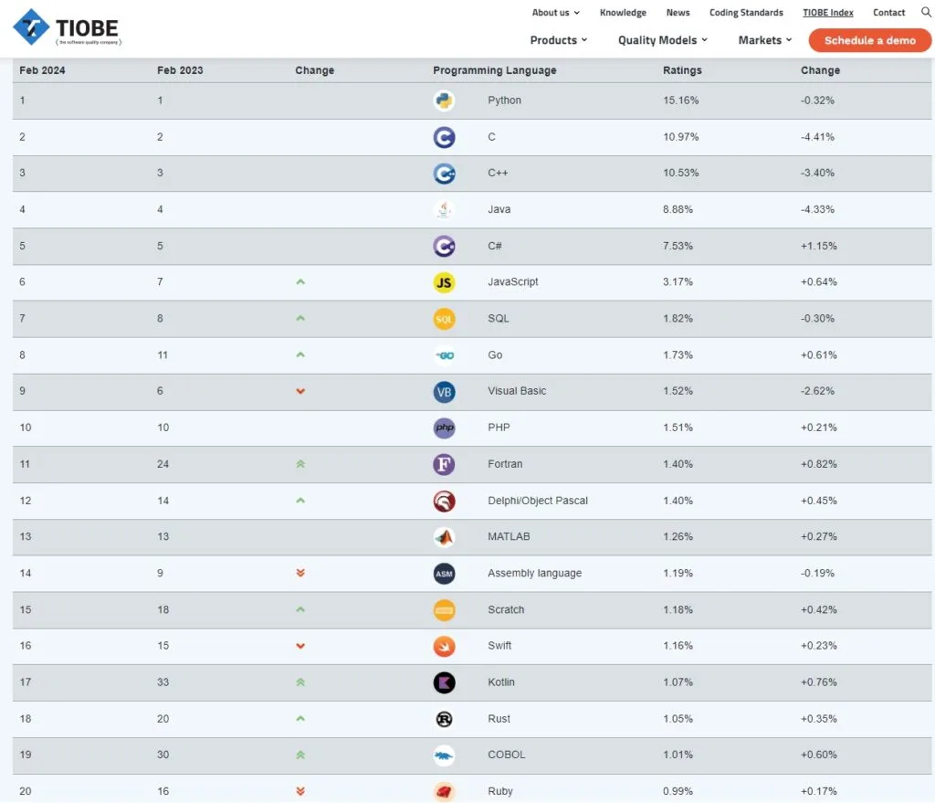 Python, C et C++ maintiennent leur suprématie dans le classement TIOBE, tandis...